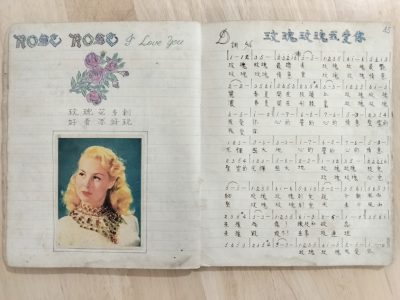 10岁至今,我用过的本子装满了几个收纳盒,塞进老家的橱柜。对于我的“怪癖”,家人一方面不理解我为什么可以用那么多笔记本,另一方面却在出游的时候给我买精美的笔记本。我从小没有什么朋友,心里却非常渴望自己能和别人分享些什么。这股分享欲后来发酵为难以抑制的书写冲动,致使我养成什么都可以记,什么都可以写的习惯。家里没多少人喜欢涂涂写写,而我一直以为自己是异类,直到最近发现公公于1954年抄写的歌簿,我才发现自己爱写笔记的基因其实有迹可循。似成语故事里的伯牙,我终于遇见锺子期,但后者不幸离世。我猛然发现,原来怪癖的源头可以归咎于隔代遗传。