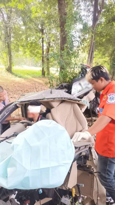 车祸于周六约7时40分,在呵叻府甫崖区304号高速公路发生。救援人员赶到现场时,发现车子已经完全毁烂,而且撞成两截,走到司机座时,发现司机伤势稍微严重,脸部和眼角周遭受伤,头部骨折,身上还有瘀伤和擦伤,但意识清醒,能够交流,只是呼吸困难。