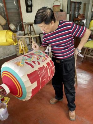 传统灯笼全凭纯手工制作,非科技能取代。好比灯笼的一笔一画,都是画师亲手描绘。全文辉也画,但遇到不擅长的,就会找来画师黄锦荣帮手。