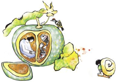 爸爸背着沉重的壳活在这里。用餐时,他盯着眼前的食物发呆,板着脸,没有表情。咽了几口饭,菜只吃了一些,然后离开餐桌。