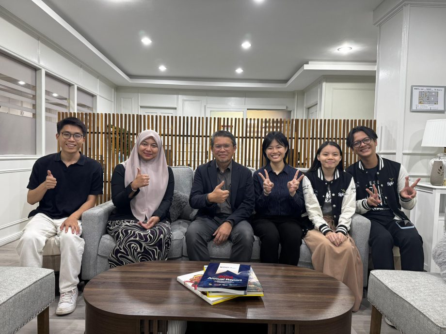 2025/2026 年度 AIESEC in UPM 管理层合影。右三为主席张紫卉;左二及左三分别为 AIESEC in UPM 顾问老师以及博大商学院院长。