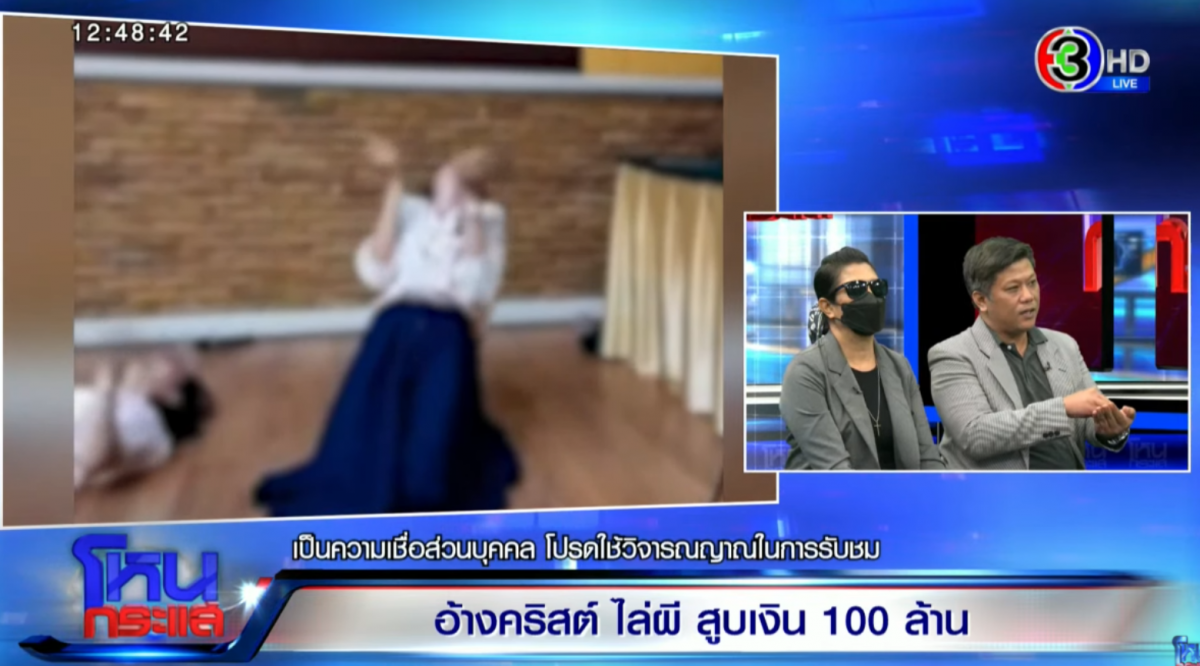 泰媒《鲜新闻》报道,多名邪教组织的前信徒今天在谈话性节目《乘风破浪》中踢爆,这个自称是基督教会的教会领袖声称拥有“圣灵之火”的神圣力量,能够驱除附身在信徒体内的邪灵,实际作法却充满争议。
