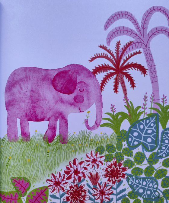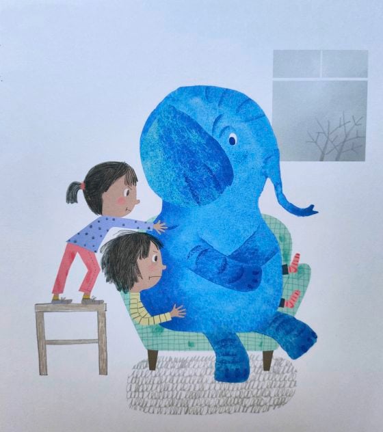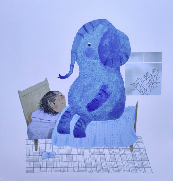 全书的插画,从线条到用色都柔和淡雅,能让读者在视觉上觉得舒服,不浮夸也不喧宾夺主。蓝色大象并不可怕,即使她来访,也可以很平静。我想插画成功强调了这一点。