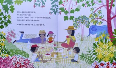 因为心头压着蓝色大象,小男孩失去了食欲,吃不下饭,连他最爱的巧克力也不想吃。所幸后来他还是接受了爸爸的建议,就是到外面去走走,活动活动,呼吸一下新鲜空气。