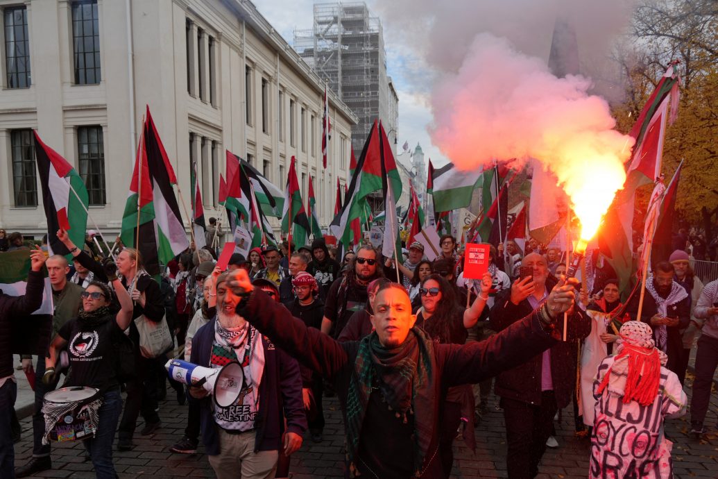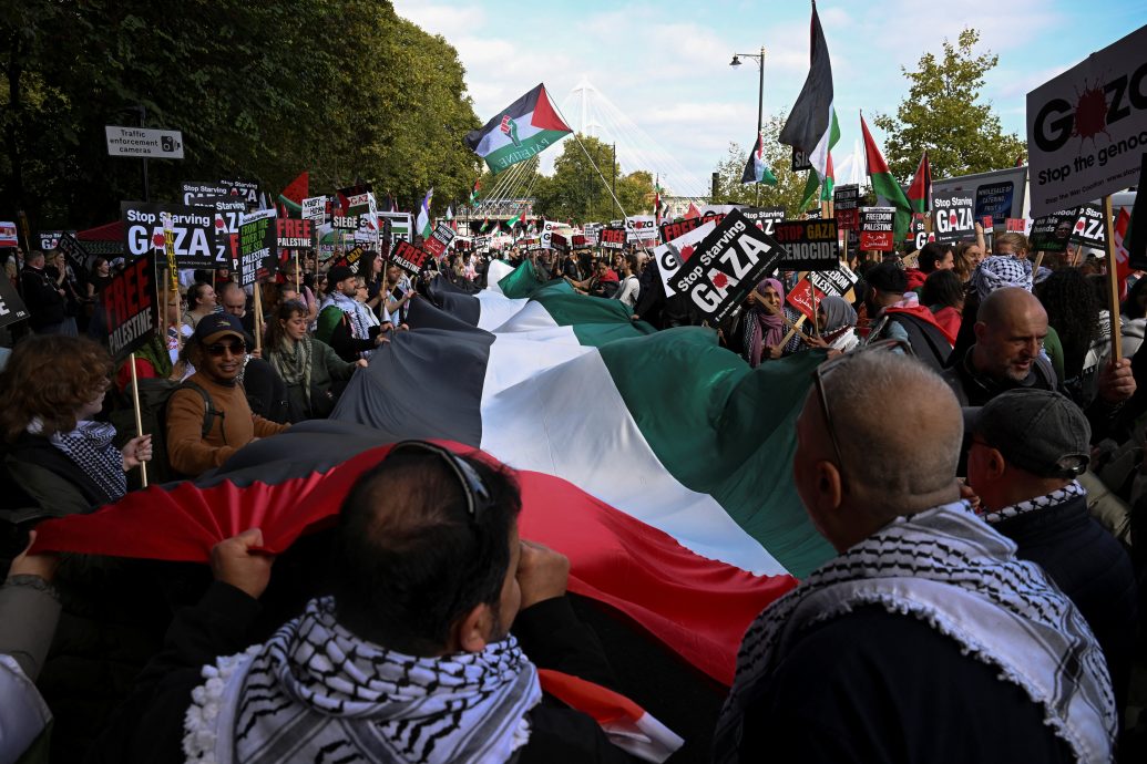 在伦敦泰晤士河畔,高举巴勒斯坦国旗的挺巴民众形成壮观场面。另一方面,反示威群众却挥备以色列国旗,大声播放音乐,与挺巴游行队伍对峙。伦敦警方表示,双方在现场爆发零星肢体冲突,“少数人被捕。”