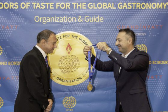 阿伦(左)在5年前获颁2020及2021年全球美食风味金奖大使,让他有感必须继续推广世界美食,并维护所有国家的烹饪遗产及地方传统。(图:Greek Taste Beyond Borders官网)