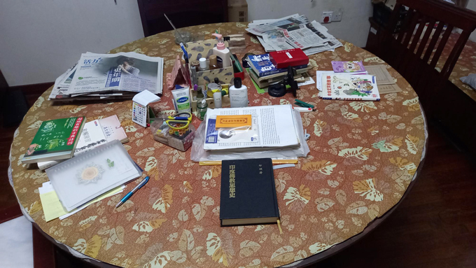 坏处是,大家的书本及杂物都爱往我身上堆。还好女主人每隔一段日子便会清理桌子上的杂物。不过,我想提醒女主人:“你那叠特地抽出来的《星洲》副刊堆积了很久啦,少看手机多阅报,早日还我本来面目!”
