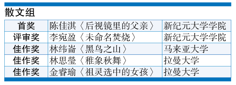 【散文评审奖】(奖金800令吉及证书)