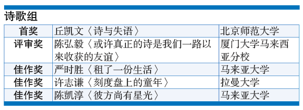 【诗歌评审奖】(奖金800令吉及证书)