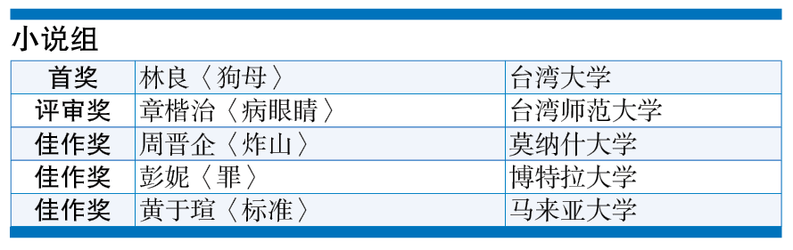 【小说评审奖】(奖金800令吉及证书)