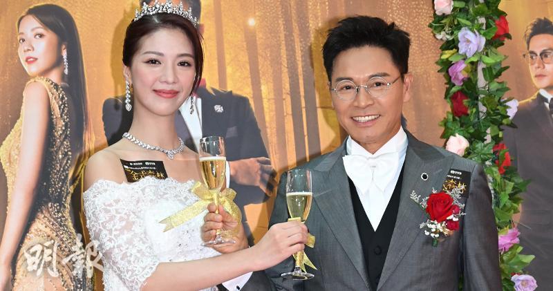 (香港19日讯)郭晋安、陈晓华、罗子溢及龚慈恩等,今天(19日)出席无线台庆剧《金式森林》宣传活动,郭晋安与陈晓华即场重演剧中婚礼场面。
