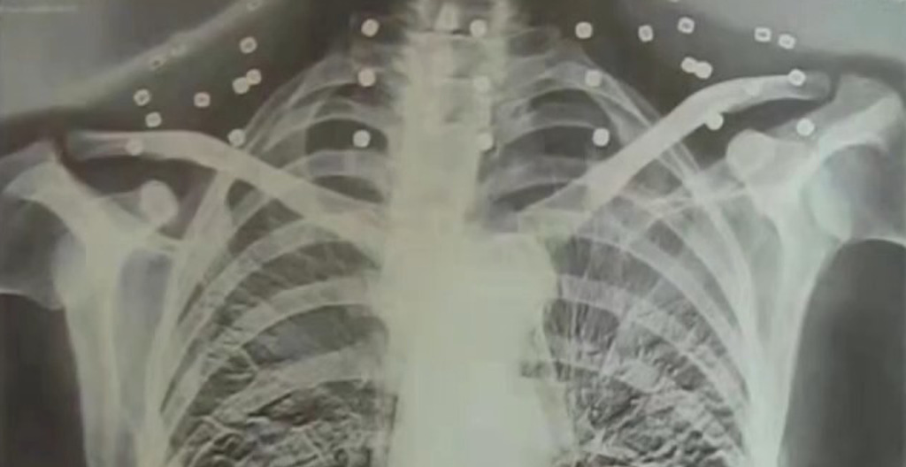 没想到影像中的物体,竟是吴以先年轻时在1965年参加战役时,体内所留下的弹片,他自称并不打算将弹片取出,因为那象征过去与战友并肩作战的回忆,也是他的勋章。