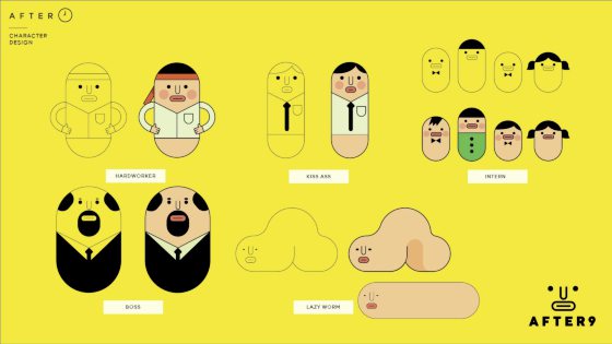 “我们当时都是上班族,对职场现况都有一些不满,就用诙谐的方式设计了一个名为After 9的IP,创作了一系列动画。这个原创动态设计意料外被业界看见与肯定,也因此接到了第一个商业企划,获得了第一笔创业的启动基金。”
