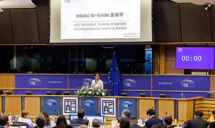台湾副总统萧美琴周五(7日)在布鲁塞尔欧洲议会举行的“对华政策跨国议会联盟”(IPAC)峰会发表演说。 (照片取自IPAC官网)