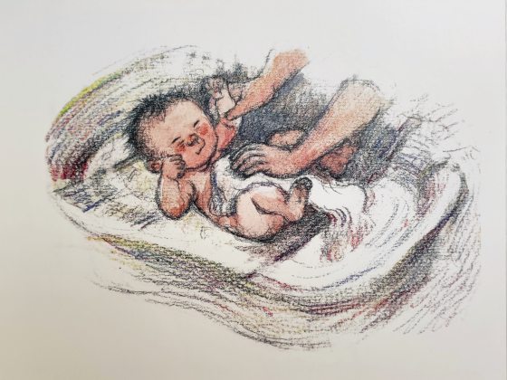“终于有一天,我听到外面有强大的呼唤:宝贝,你准备好了吗?你现在可以出来了吗?是妈妈的声音。是妈妈在呼唤,我想出去,我开始往外钻:一二三,一二三……“来了、来了”,有谁在说,“请再努力一下!”像小苗破土,像太阳喷薄而出,“我来了!”