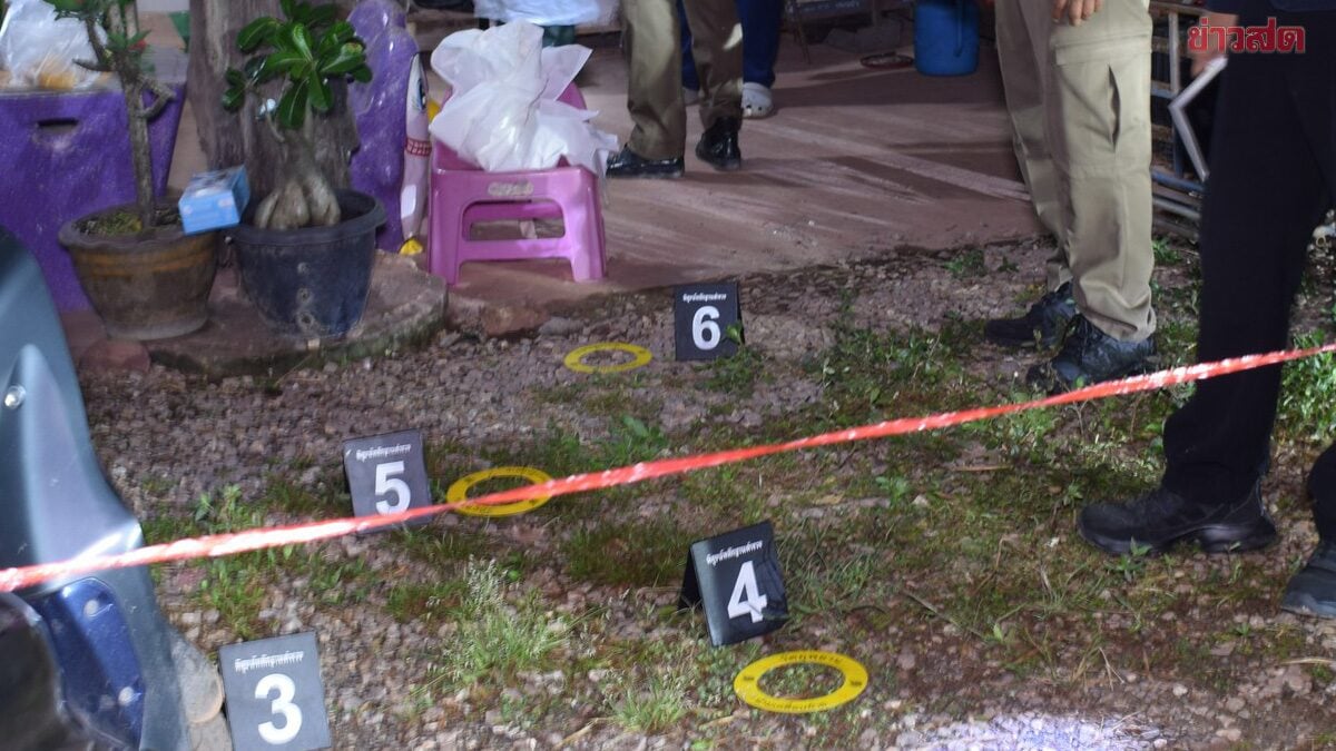 男死者是29岁的纳塔蓬(化名),他身中5鎗俯尸店门前摩托车旁,分别后脑1枪贯穿颈部、腹部1枪、胸部2枪、右臂1枪;28岁女死者普里查(化名)仰卧在一辆皮卡车后方,左颧骨1枪、右腰部1枪、腹部1枪、左乳下1枪。
