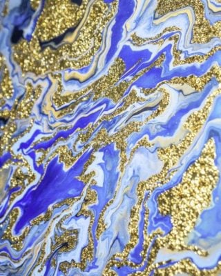 流体作画虽然是让颜料流动就会带出纹路,但要怎么引导、打散、聚集颜料又有不同的。“一开始我很喜欢(Dutch Pour),就是用吹风机、嘴巴或吸管吹气扩散颜料。弄久了也会头晕,会稍微休息……
