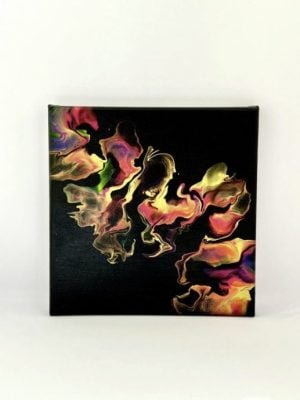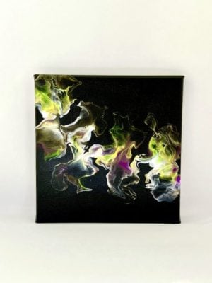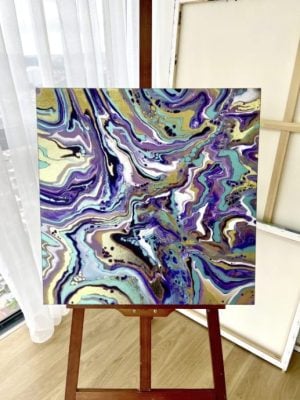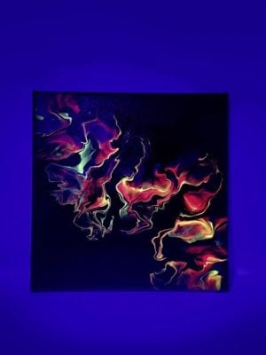 不过,流体作画虽然是让颜料流动就会带出纹路,但要怎么引导、打散、聚集颜料又有不同的。“本次展览其实也是展现我接触流体画的心路历程。一开始我很喜欢吹流式(Dutch Pour),就是用吹风机、嘴巴或吸管吹气扩散颜料。”