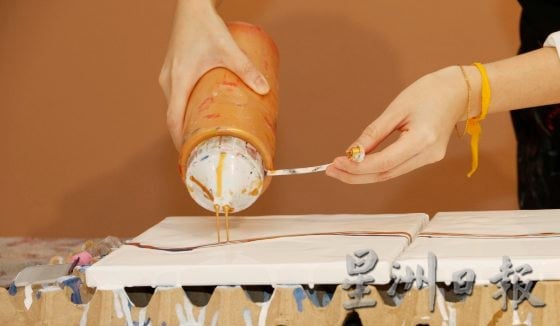 “参与者来之前会上网找到自己想要的范例。我都会说他们很用心,但请忘掉它,我们不可能复制一样的作品。就好像我们的生活,有太多未知数,重要的是专注当下。”颜料倒多了、倒少了都可以,让颜料自由流动、自然停止。