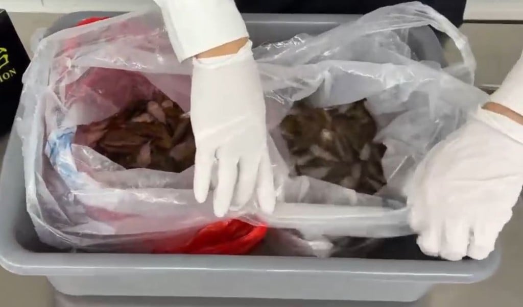 女旅客被检查时,关员于其松身的鱼尾裙内,发现两个吊在大腿外侧的胶袋,装著229条疑似活体鱼。
