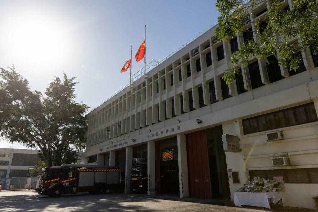 (香港29日讯)在香港大埔宏福苑五级大火中不幸殉职的消防员何伟豪,所驻守的沙田消防局今早下半旗致哀,并举办默哀仪式,部分消防员更特地从火场赶到致哀,再出动执勤。