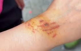 事后,她还拍摄视频向朋友“炫耀”已青紫肿胀的咬痕,其中一名男性友人提醒她手腕已感染了,劝她去医院,警戒说“严重了可能需要截肢”。