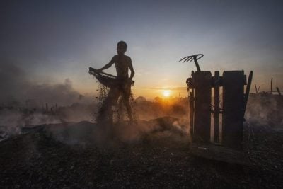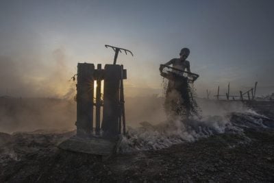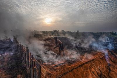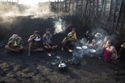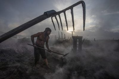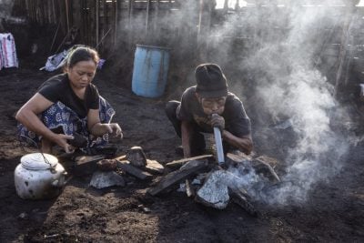其中一名工人朱曼丁(56岁)来自制作传统木炭世家,有30多的经验,他一周7天无休,每天都从清晨2时左右开始工作,他的妻子斯里瓦尤尼(50岁)和5个孩子,也同样在这里讨生计。