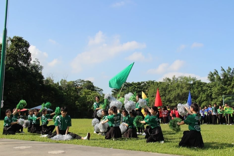 这场运动会出动总动员,简单却不乏仪式感。首先,振中的醒狮团迎接嘉宾们入场后,由校内各个团体,包括振华总校的学警团、男童军团、女童军团、红新月会、管弦乐队、二十四节令鼓等,跟随4大队伍黄队、红队、青队以及蓝队以操步的方式入场。