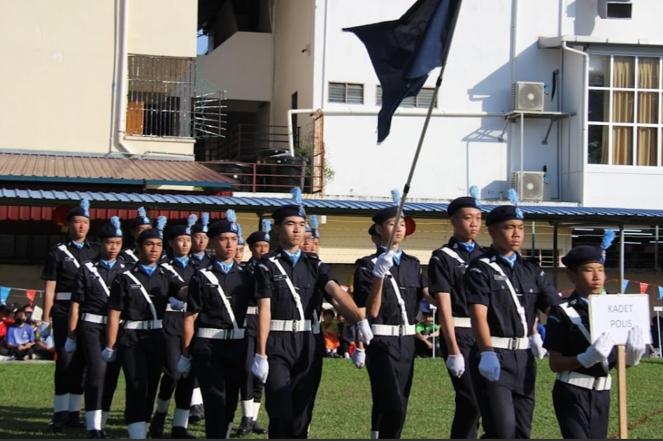 而制服团体们的领头分别握着各自的团旗,带领队伍操步入场,为本次的运动会开场。每个团体的操步入场不仅是开幕仪式的重要环节,更是每个团体之间的比赛,其意义是为了鼓励学生之间随时保持团结,保持互相的体谅以及礼让,才能提升团队之间的默契程度以及每一步之间的整齐度。