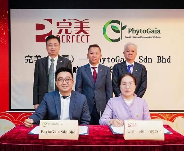 仪式上,陈泓缣见证完美(中国)有限公司研发中心总经理李晓敏和马来西亚PhytoGaia有限公司副总裁谢鉫良,代表两方签署合作备忘录,为两国企业在油脂科技与功能性脂类开发合作掀开新序。