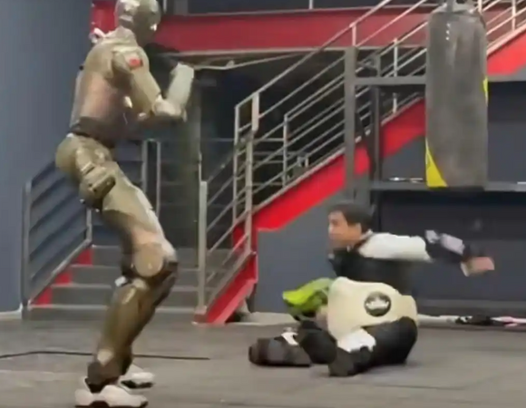 综合中媒报道,事发于T800新品展示活动上。为了验证动作能力,首席执行员赵同阳亲自上阵,穿着护具与自家机器人切磋。首次交手,机器人一脚差点踹到他脸上,吓得赵同阳连忙闪避,以为只是操作偏差。