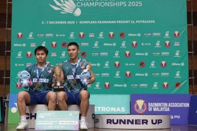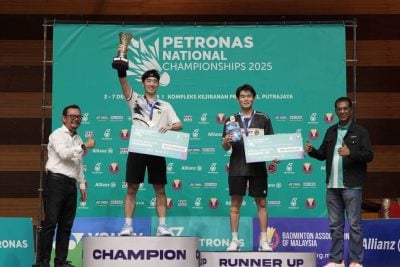 (布城7日讯)2025年全国羽球锦标赛冠军出炉,世界排名59位的自由人男双“益昌组合”刘航益与吴永昌无意外大热夺冠。此外,自由人男单王振宇称王,大马国家羽球队女单莎妮莎封后,而国羽女双刘子瑜与爱娜未能成为最年轻全国冠军。