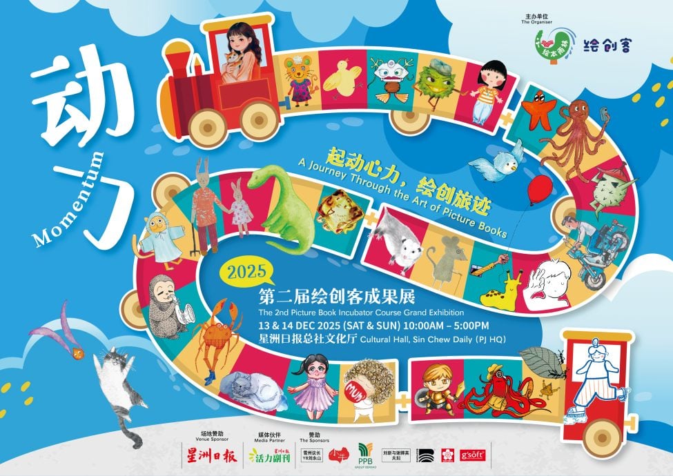 《绘创客2025:动力成果展》 成功汇聚来自巴生谷、槟城、吉兰丹、柔佛及新加坡的32位学员,共同踏上一段充满创意与探索的绘本创作旅程。