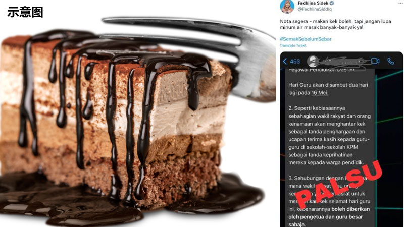 教育部长法丽娜驳斥一则流传的短讯,指人民代议士和名流要送蛋糕到学校庆祝教师节,蛋糕必须有希盟的标志。