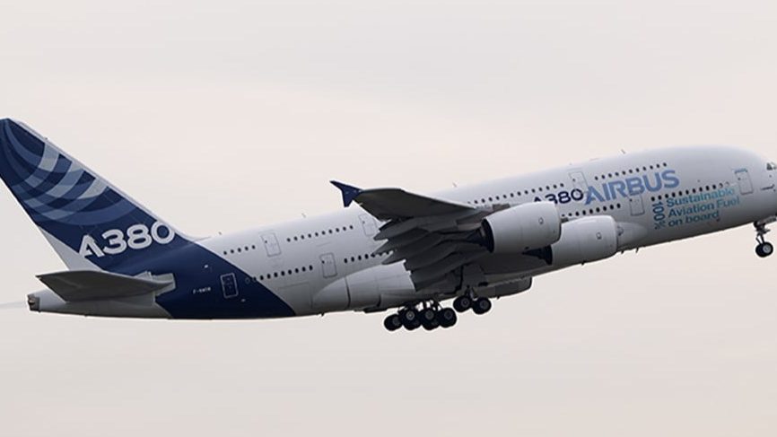 欧洲飞机制造商空中巴士公司一架A380型客机日前由废弃食用油等制成的燃料提供动力,完成试飞。