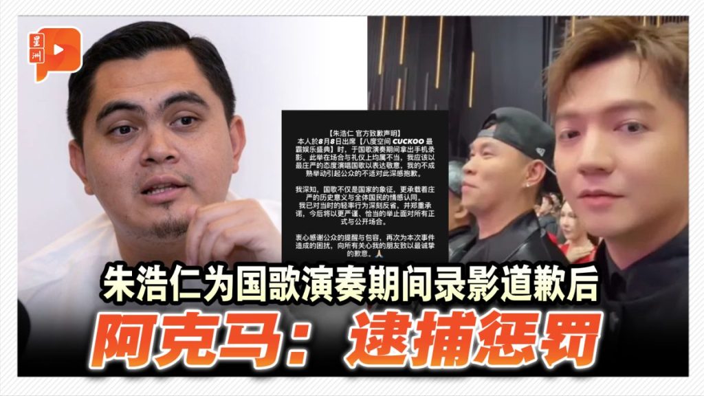 朱浩仁为国歌演奏期间录影道歉后 阿克马:逮捕惩罚