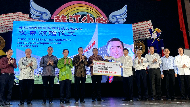DAP donates RM1 million towards the development fund of Han Chiang University College of Communication, the first time and the largest sum of donation from the DAP so far, in aid of Chinese education.