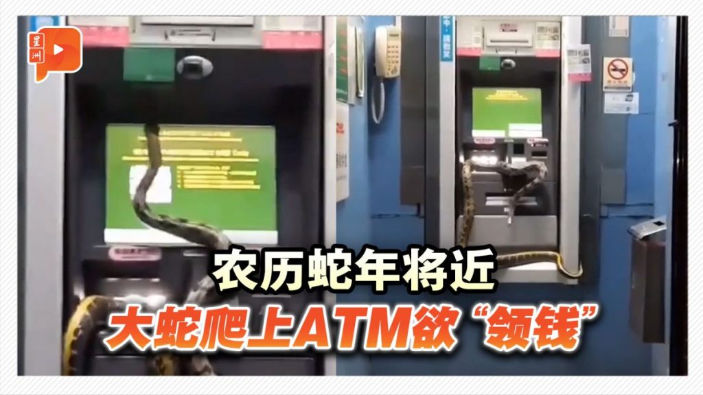 农历蛇年将近 大蛇爬上ATM欲“领钱”