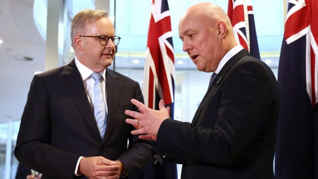 纽西兰新任总理卢克森(右)周三出访澳洲,称希望可以加入澳英美联盟(AUKUS),加强澳纽之间的安全合作关系。