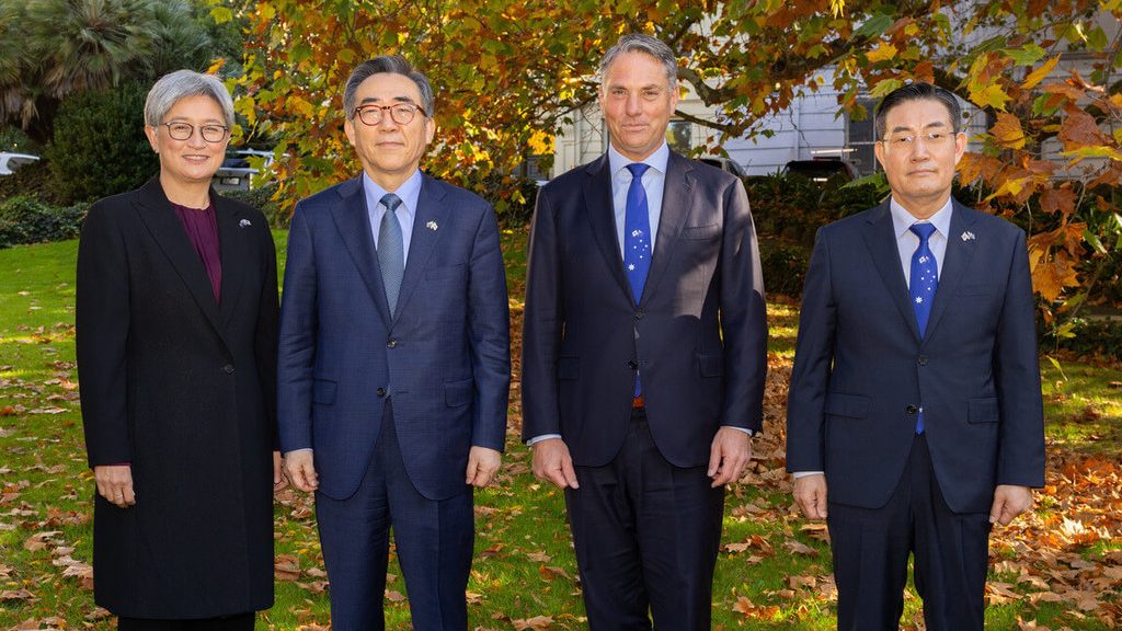 在日本拟加入澳英美三方安全伙伴关係(AUKUS)第二支柱阵容后,韩国今天在与澳洲2+2外交与国防部长会谈中,表达加入第二支柱兴趣,双方也就讨论韩国参与可能性展开讨论。