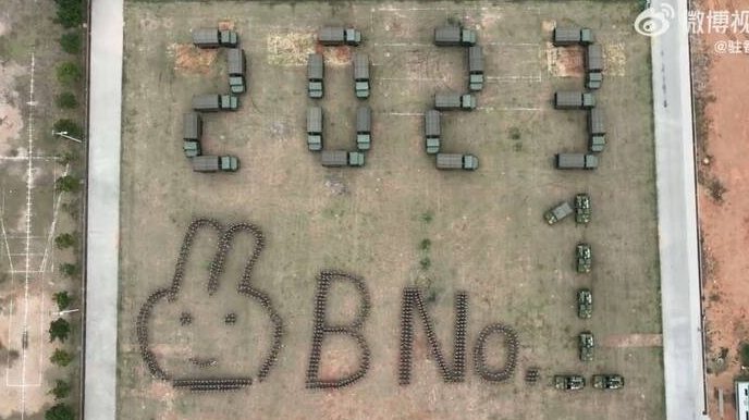 农历新年,中国人民解放军驻香港部队除夕(21日)上传一支贺岁影片,上百名解放军和军车排成不同的队形图案,然而下排图阵“BNO”却引起许多港民热议。