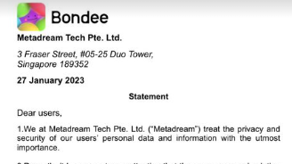 爆红应用程式Bondee被指盗取用户信息,使用户信用卡被盗刷,该母公司Metadream昨日发声明澄清,并不属实。