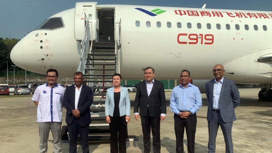 交通部长陆兆福欢迎中国商用飞机(COMAC)自主研发的最新C919客机,即日起在雪州苏丹阿都阿兹沙机场(梳邦机场)展示,开放予航空领域相关人士参观。