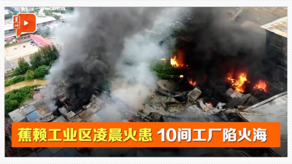 蕉赖一工业区发生火患,10间工厂陷火海,其中8间被100%严重烧毁,所幸没有造成人命伤亡。
