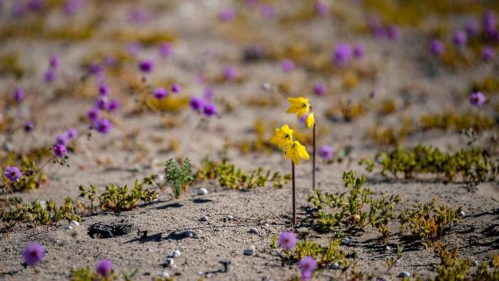Flowers bloom on the Atacama desert, some 600km north of Santiago, Chile.