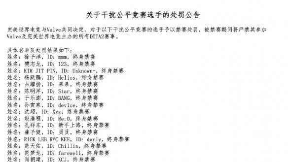 电竞DOTA2官博发布了《关于干扰公平竞赛选手的处罚公告》,5大马选手因作弊被终身禁赛!