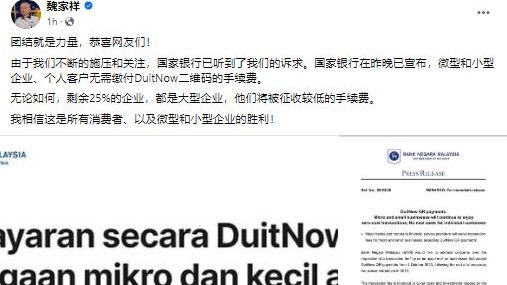 微小企个人免DuitNow手续费 魏家祥贺网民诉求有结果