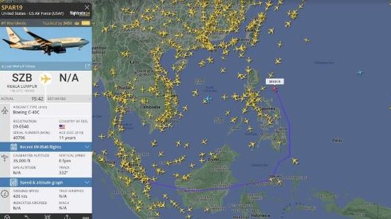 美国众议院议长佩洛西下午3时40分搭乘专机离开马来西亚,航班追踪网站上竟有超过20万人“实况”追踪专机动向。