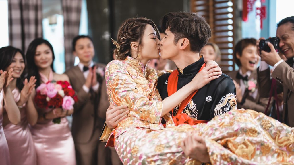 今天是陈家乐与连诗雅的大喜之日,早上两人跟足中式传统习俗进行接新娘仪式,经过姐妹团一轮“蹂躏”,陈家乐终于抱得美人归,一对新人在尖沙咀星级酒店举行午宴晚宴招待亲友,中午时分亦在酒店内进行注册仪式,一对新人宣誓时都忍不住落泪,场面感人。