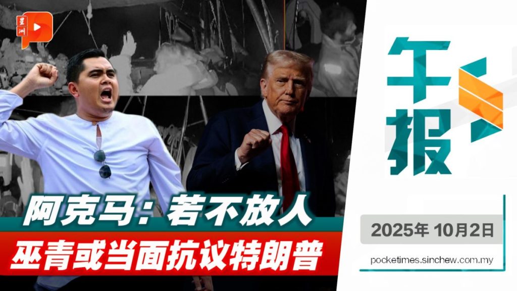 全国巫青将在美国总统特朗普访马期间大规模抗议?以色列拦截“全球坚韧船队”(GSF)的行为,引起谴责声浪。首相安华严正敦促当局,立即释放包括马来西亚公民在内的所有志愿者。巫青团长阿克马也放话说,若所有GSF志愿者未获释放,他们敦促政府取消对特朗普到访马来西亚的邀请,否则…… 重点内容: (1)赴加沙“全球坚韧船队”遭拦 安华促以色列放人 (2)阿克马:若加沙救援船志工未获释 巫青或当面抗议特朗普 (3)全职电召车司机 月中前获额外BUDI95额度 (4)法米:263账号是真的 Meta否认安华脸书“造假” (5)雪王储大婚 州内洋溢幸福氛围 (6)森州学府 一周内发生第二宗学生离世事件 (7)菲律宾6.9级强震 增至72人死亡 (8)珍古道尔辞世 享寿91岁